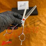 The private label left handed pet grooming scissors are made to support comfort precision and style for groomers. These scissors provide a sharp clean cut that keeps pet coats smooth healthy and well shaped every time.